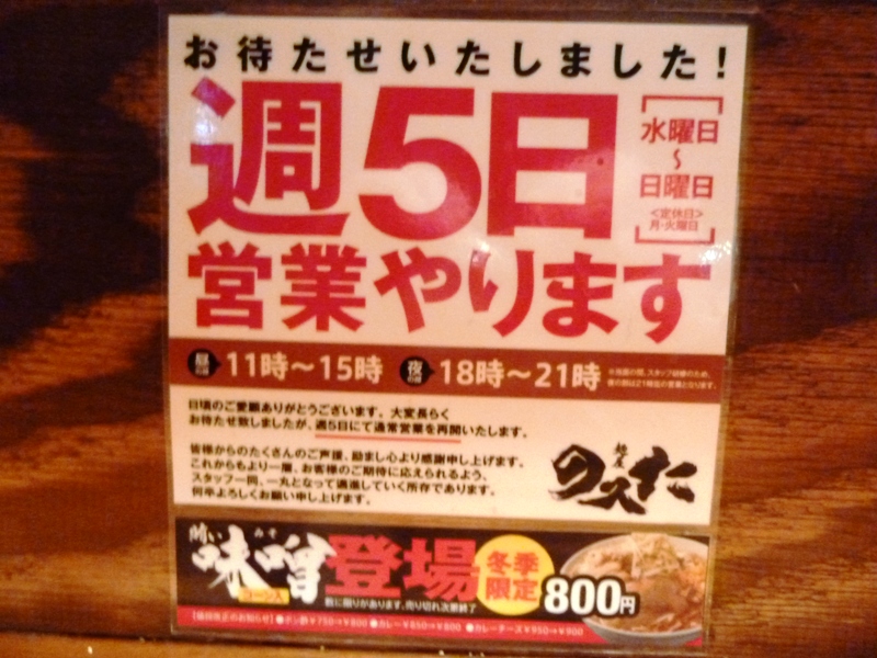 「麺屋の久た」と勝手に思ってたが、「麺屋のスた」でした…