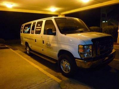 オンタイムでシャトルバンも出発。同乗者にUAのCAさんも居ました。