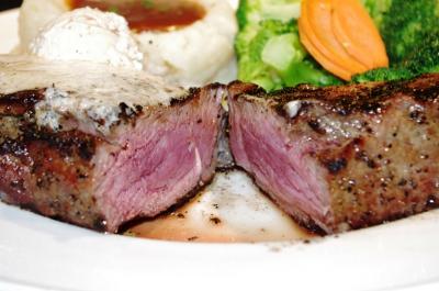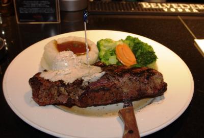ONE POUND(450g)のステーキにマッシュポテトと温野菜。\4000