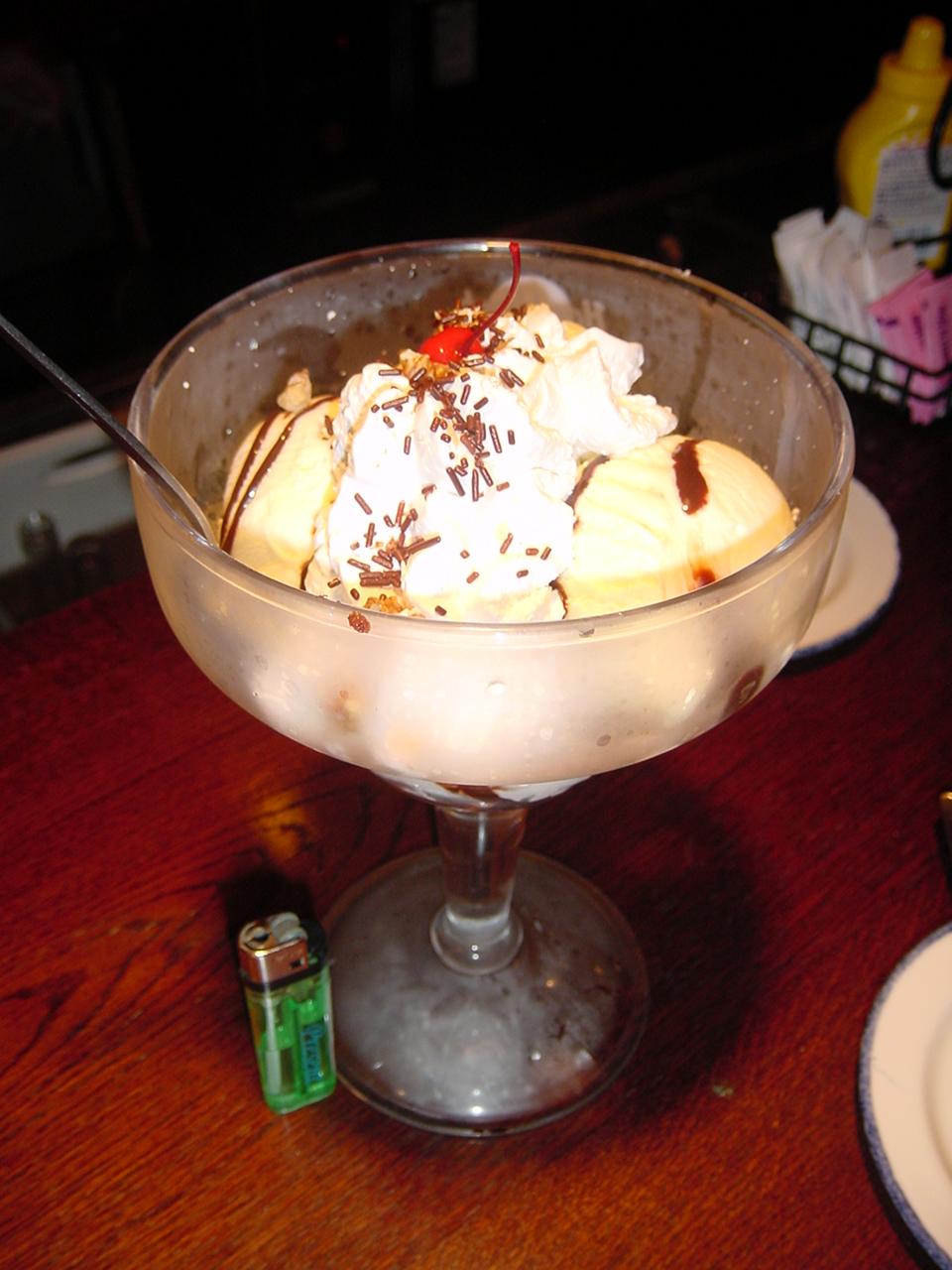 の上にアイスクリームがのってて、どうだ~って感じにホイップクリームが乗ってて、