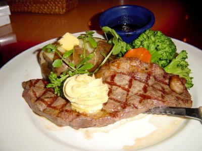 ハーブガーリックバターをトッピングで、ハーブガーリックバターを肉に塗って(溶かして?)食べるのもよし、