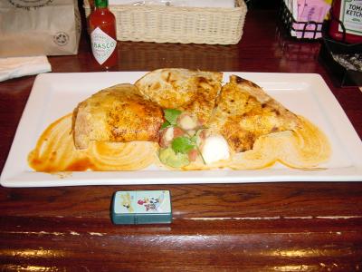 ピザを半分に折った?トルテリアで、中身はチキン・パイナップッル等で、