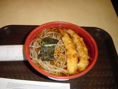 少し並ばなくてはならなかったので、前々から気になってた日本食の店で天そばを購入。