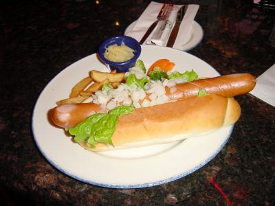 出てきた瞬間ビックリする大きさのホットドックで食べ応え十分の一品です。