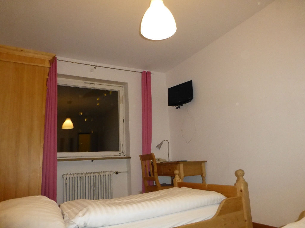 TVは壁掛けの20インチ位の物で横への角度調整は出来ますが上下の調整不可なのでTV寄りのベッドからは変な色に映ちゃいます。