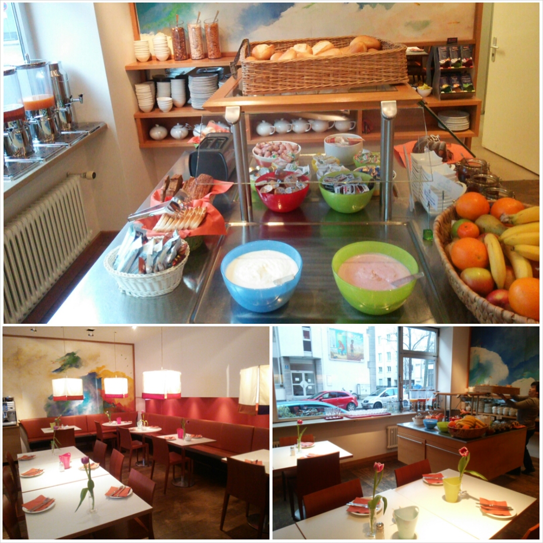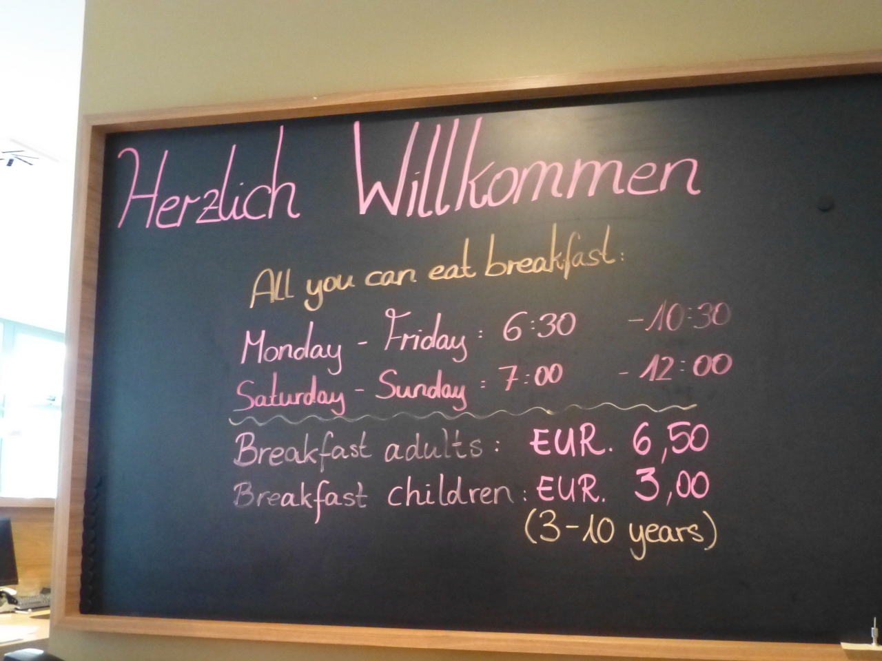 朝食は1回利用すると9ユーロと言われ1日だけ利用しまし たが9ユーロの価値なし。パン4種・シリアル・ヨーグルト・果物(ノーカット)・お菓子類等。朝食代金はチェックアウト時に精算します。近くのコンビニ的なのは20時には閉店してましたので中央駅内(1F/2F)のパン屋さん等で朝食類を仕入れるのが断然安いです。部屋にはコーヒーメーカーありませんのでカップ麺作るのは不可。飲料の自販機なしだが、フロントでお願いすると瓶入りミネラルウオーター3ユーロで売ってくれました。ガス入りかナチュラルか聞かれます。ビールも売ってくれるようでしたが値段不明。全室禁煙。エントランス外で愛煙家は吸ってましたが、夜12時過ぎると施錠されてる事がありますが、内側に鍵が刺さったままなので回せば開きます。今回3泊で2万円だったので立地も含め満足いくホテルでした。もしまたミユンヘンに行く時に利用すると思います。- 旅行時期