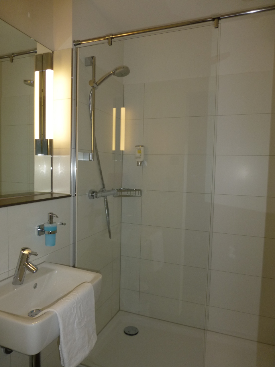 シャワールームは水圧・温度調整問題なしでした。ヘア&ボディーソープと画期的な物だけで個人的に抵抗が有ったので持参したシャンプーリンスを使って備え付けのヘア&ボディーソープは体洗い用に使いました。直径の大きなシャワーヘッドはホース付き。シャワーカーテンはカビなど汚れ無かったです。ヘアドライヤー常設。ベッド幅は狭く大柄な方は窮屈だと思います。