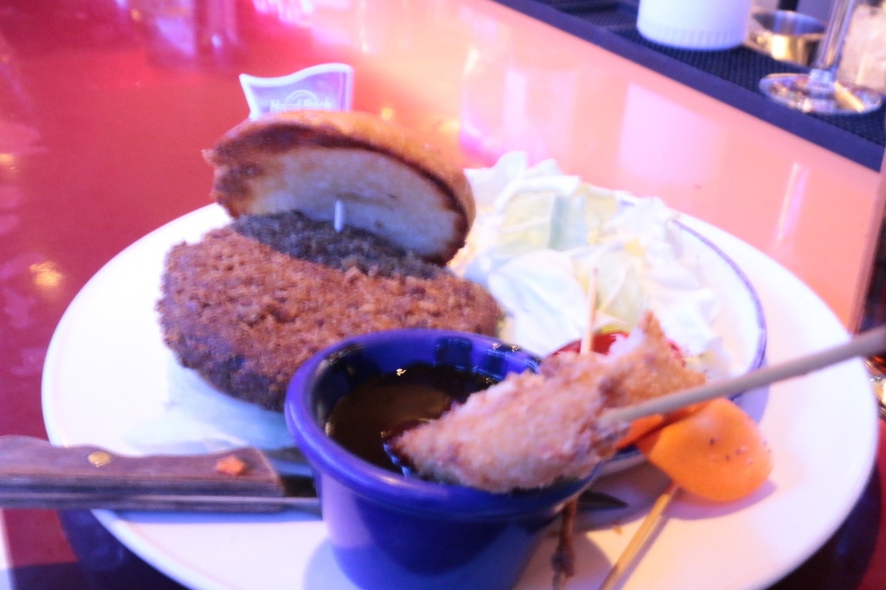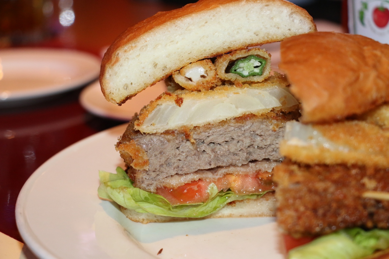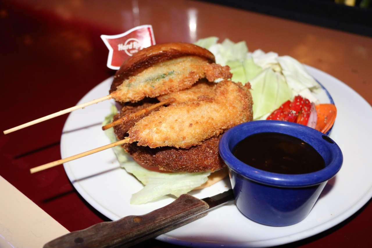 ハンバーガーと串カツが合体する荒業なメニューなのです!