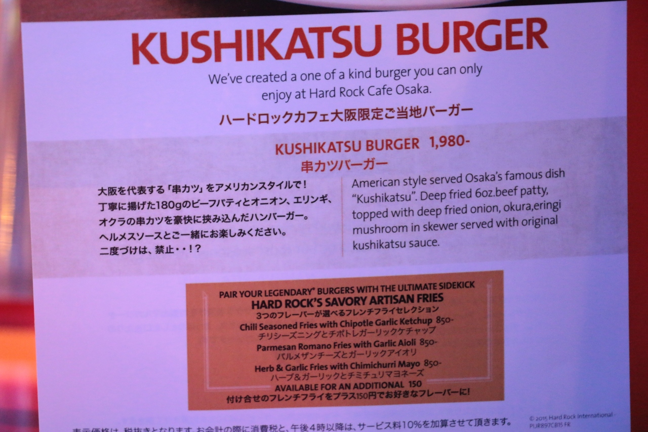 大阪名物とのコラボのハードロックカフェ大阪店でのみ食べれるメニュー期間限定販売ですので是非お試しあれ!!- 旅行時期
