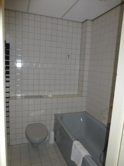 バスルームはバスタブとシャワーの2ヶ所がありどちらも固定式シャワーヘッドでバスタブ付きの方はシャワーカーテンが短くフロアが水浸しに…