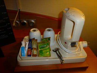 冷蔵庫(ミニバー)・コーヒーメーカー(紅茶・インスタントコーヒー・砂糖・ミルク) サービスのミネラルウォーター1日一人1本(300ml)500mlの水やエヴィアンは有料。