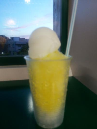 レモンシャーベットの乗ったレモンシロップのかき氷です。