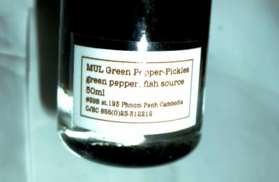原材料GREEN PEPPER FISH SOURCEって表記。もちろんMADE IN CAMBODIA