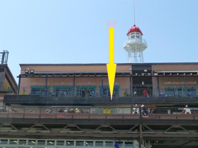どこにあるのか最初判らなかったが、モザイク2階の海側ほぼ中央付近で、モザイクの屋根の上のライトハウスのほぼ真下付近を目標に行くと見つけれます。