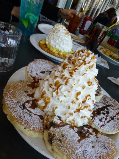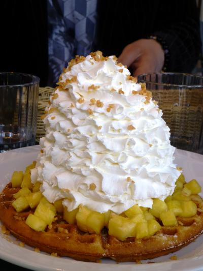 パンケーキ&ワッフルのホイップクリームの山盛り圧巻!絵になるので我々も他のテーブルでも皆さん写真撮りまくり!