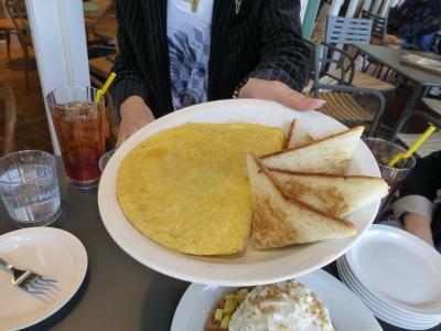 ●オムレツはToday's Special Omeletをチョイス。この日は淡路島産の玉ねぎ使用のハッシュドビーフとチーズのオムレツ。美味しかった!付け合わせをトーストにしたのですが、4人なので4等分してくれてる気の利き用♪トースト以外にポテト・ライスも選べます。