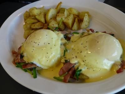 ●Eggs Benedict(エッグスベネディクト)は卵2個を4人でシェアしたが、メッチャ美味しかったので本当は独り占めしたかったのは事実…付け合わせはポテト。