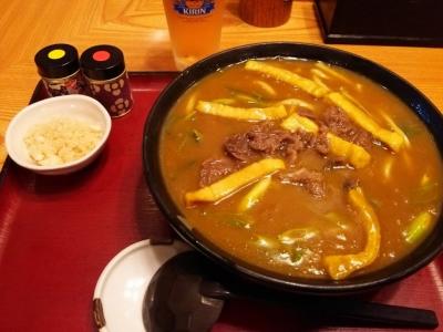 トッピング・辛さ選べ人気のどて焼きカレーうどん中辛を食しました。