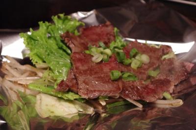 「ハラミ焼き」お好み焼の具材は薄っぺらいので肉々しいのを食べたければお勧めするメニューです。やわらくてジューシーでさっぱり系のタレと相性よし!