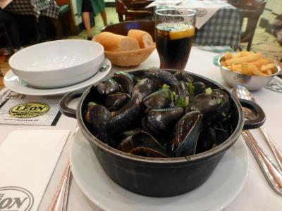 空のムール貝の殻の山の写真を撮る前に店さんに持って行かれた(涙)