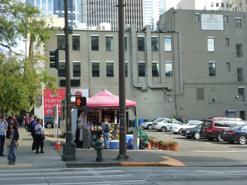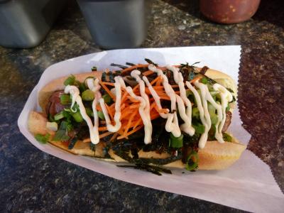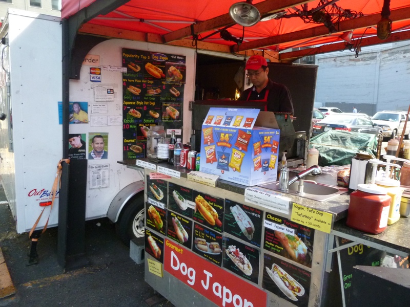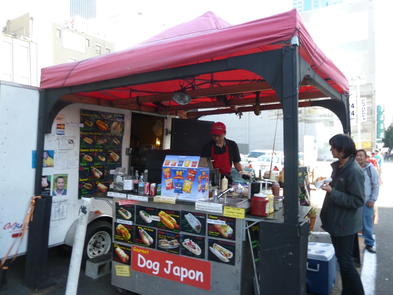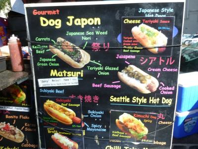 トランジットの待ち時間も合わせて約5時間足止めされてたのでダウンタウンまで出て来てハードロックカフェ シアトル店に行った時に偶然見かけたホットドック屋台!