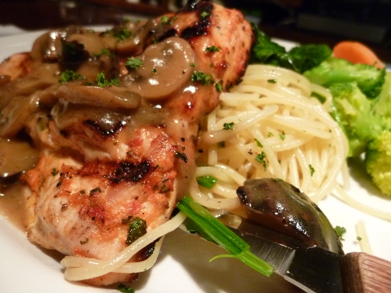 ドライトマト、バジルでマリネしたグリルドチキンにマルサラワインを使った香り豊かなソースがかかってます。