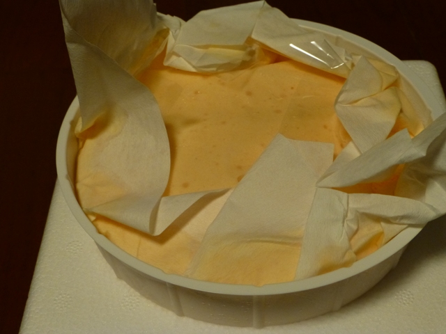 まず半分にカット。最上部を押さえながら無事カットすることは出来ましたが、それを半分にする段階で型崩れ(汗)