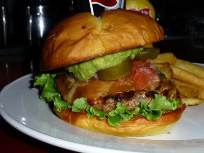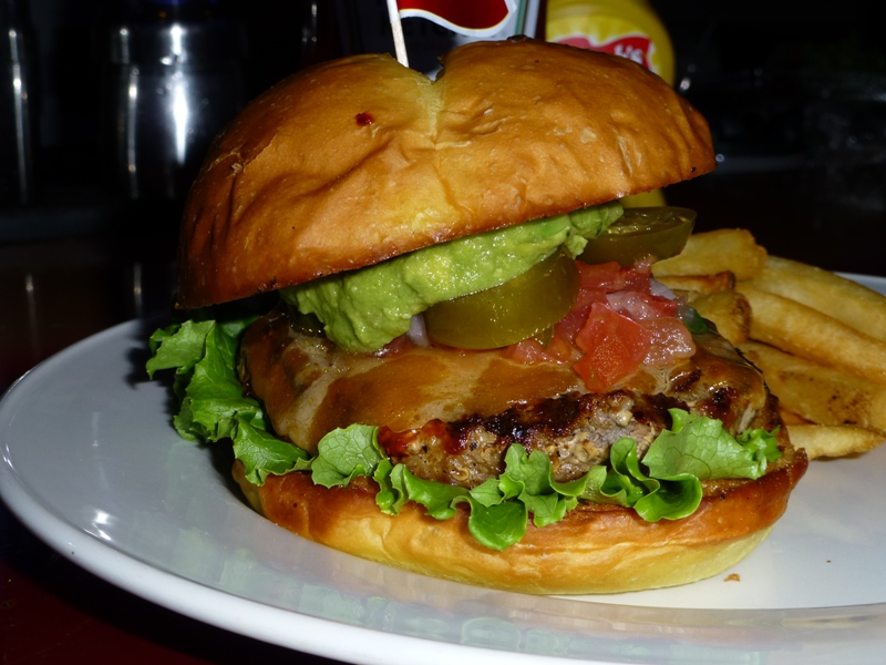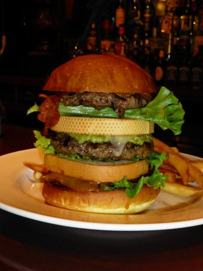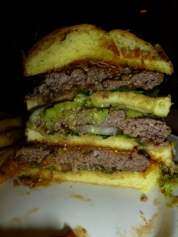中段にはモントレージャックチーズ、ワカモレ、150g のビーフパテ。
