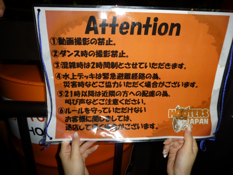 なんか規則があって動画撮影禁止だのダンスの撮影禁止だの同意を得てから撮影するようにだの…ちょっと面倒くさい感じがあるので海外のHOOTERSとは異なります。