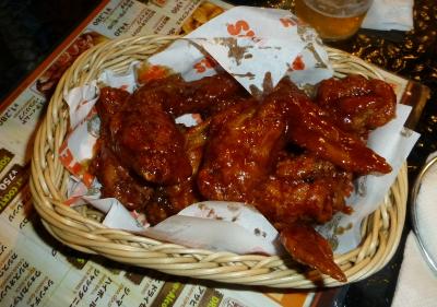 テーブル上にはロールのペーパータオル。名物のチキンウィングを食べる時に重宝しますが、やっぱウエットタオルが必要だと私は思う。