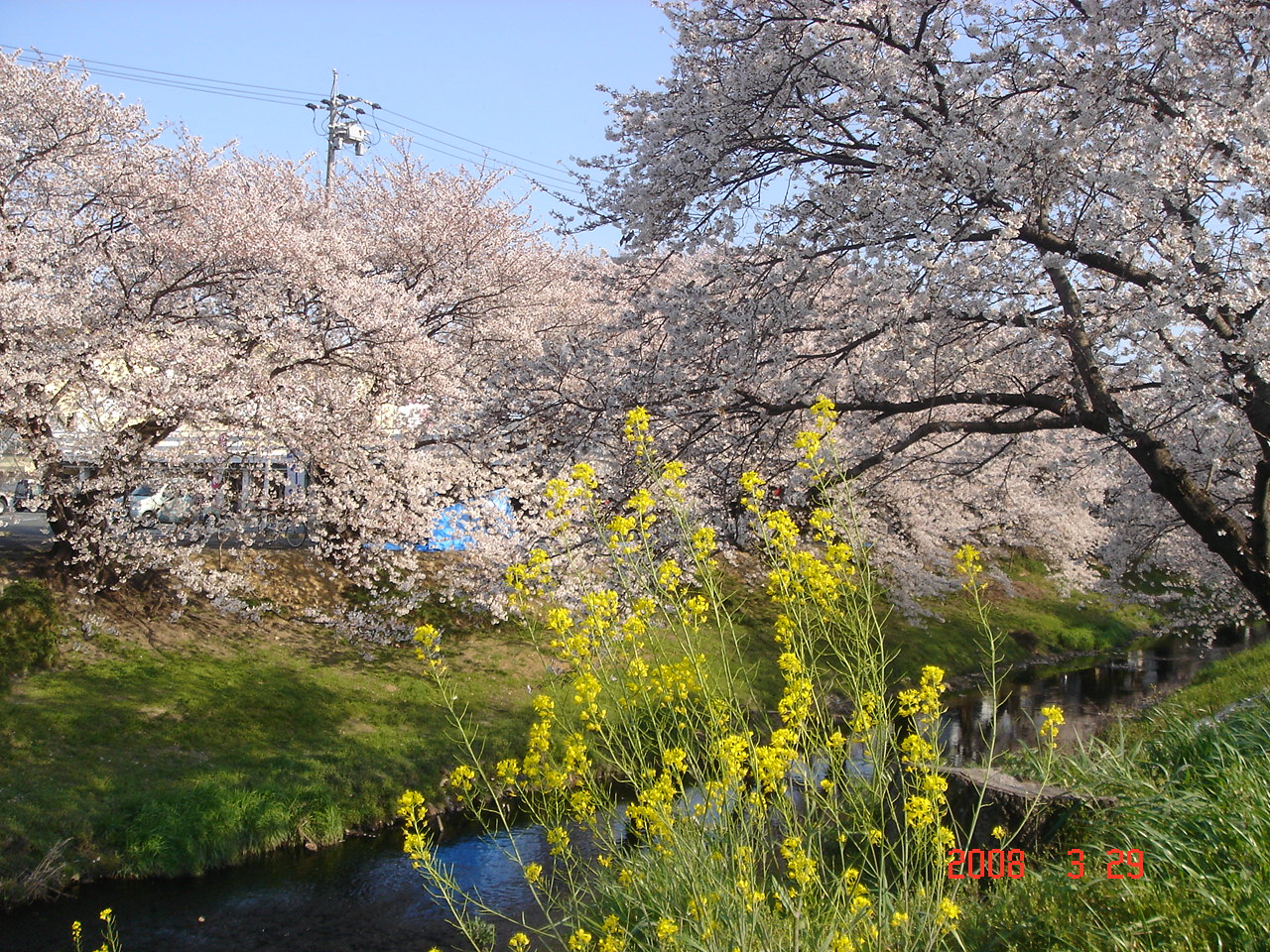 桜の季節ですね?今朝のニュースでは、東京の上野で花見の映像を行っていました。 昨日は、よい天気だったので、知り合いのバイクショップへ 行く途中、きれいな桜並木がありましたので、思わず写真を『カシャ』 ここは、浜松駅からバスで4区間かな? 馬込川沿いにある、桜並木です。 今週が山とおもいますので、行ってみてください。 菜の花がいっしょに咲いていたので、思わず 『カシャ』
