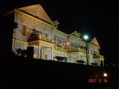 ここは、ブルーグレーの外観が美しい明治後期のモダンな建物です。是非 夜景をみにいってくださいね!