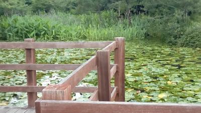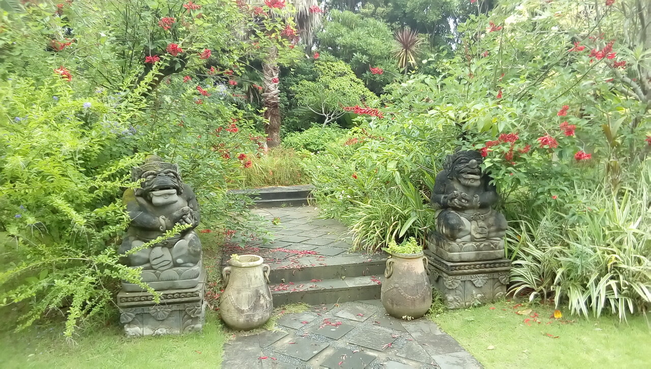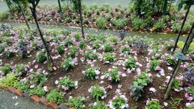 ガーデンパーク内の百華園では、テーマごとにいろいろな植物がまとまって植えられています。それらの中を歩いて回ることができます。池のあるエリアや、竹のエリア、南国植物のエリアなど、バリエーションに飛んでいます。歩いていると、時々カニが出現するのもユーモラスでした。