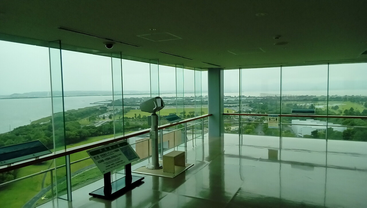 ガーデンパーク内にある展望タワーです。入場料は300円です。エレベーターで最上階まで行けば、ガーデンパークを見渡すことができます。さらに遠景を望むことも可能です。パネルで、見えている山などの名称を知ることもできます。天気がいいと、富士山も見えるようです。