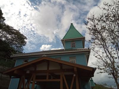 藤枝市の蓮華寺池公園の内部にあるレストランです。昔藤枝市の別の場所にあっ藤枝製茶貿易商館を解体し、蓮華寺池公園内に移築したものです。池を眺めながら色々なお茶屋軽食などを楽しめる場所です。建物も青がきれいでレトロなロマンを感じられます。