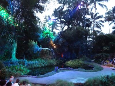 マリーナベイエリアで見ることができるウォーターショウです。滞在中に二回見ましたが、どちらも同じ内容でした。川の近くに腰を下ろしてみることができますが、早めに席を取っておかないと見えにくい場所しか空いてない可能性もあるので少し早めに場所を取っておくといいと思います。
