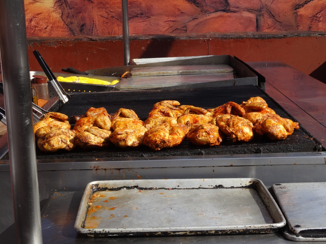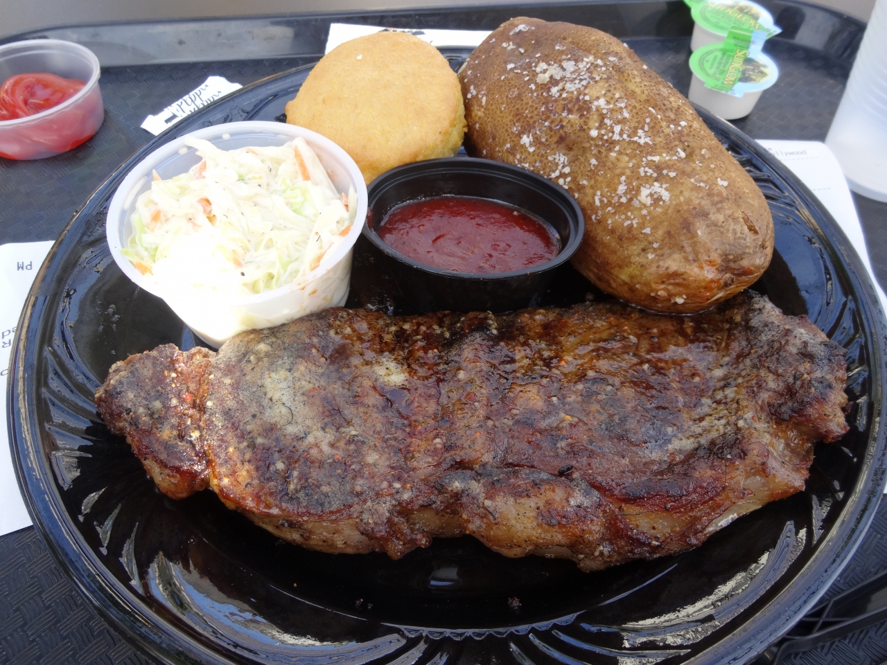 遊び疲れた休憩に、アメリカサイズの大きなステーキを食べました。黒コショウのきいたスパイシーなソースと、油っぽいお肉がとっても相性が良かったです。この頃には、私の食欲もアメリカサイズになっていたので、難なく全て食べれました。お肉に添えてあるポテトがとってもおいしかったです。