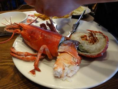 お店の人に、一人でロブスターを注文して食べきれるかを聞いたら、大丈夫!と言われたので、思い切って注文してみました。何とかお腹いっぱいになりながらも食べきりましたが、一人ではかなりのボリュームでした。地元の方が優しく、一人で一生懸命食べていたら、お客さんの優しいおじさんが私のテーブルに来て、ロブスターを割って身を取り出すのを手伝ってくれました。一人旅ならではの経験ができたと思います。お礼に、日本から持ってきた抹茶味のキットカットをプレゼントしました。いい思い出です。
