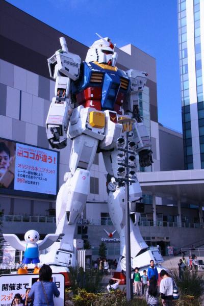 実物サイズのガンダムを見ることができるところです。かなり大きいので工夫をして写真を撮らないとすべてを入れることができません。夜にはライトアップされて、ガンダムの目から光のビームが出ていて怖い&かっこいいです。