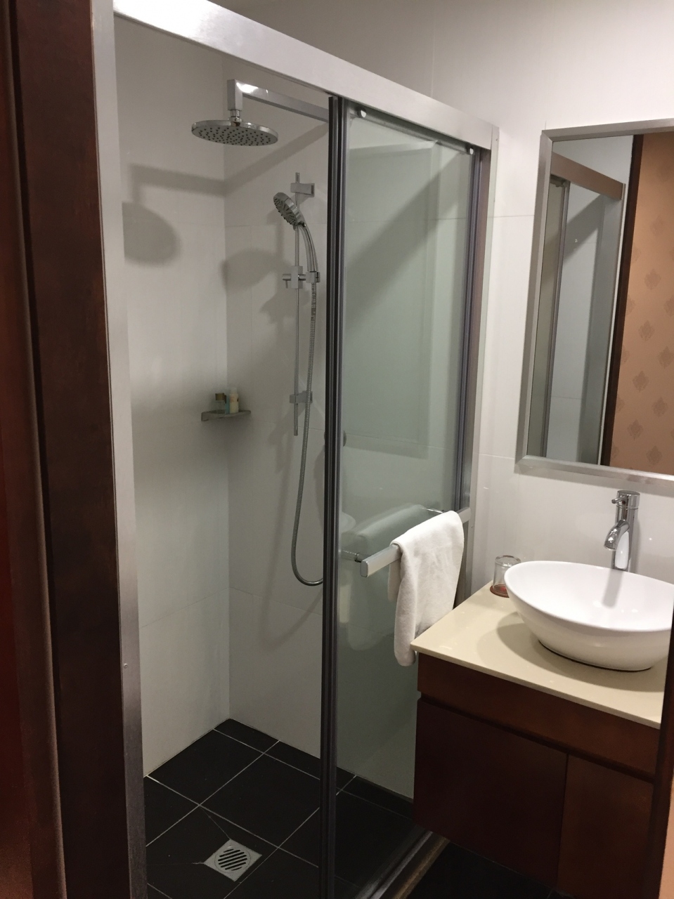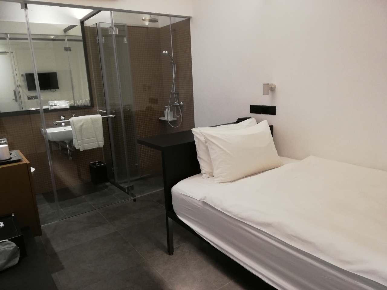 部屋はモノトーンでおしゃれ。個室に独立したエアコンがついているタイプ。温度はしっかり下がるのに除湿されないのが不思議。よくホテルであるようなカピカピにはならないんだけど、ちょっと湿度が高すぎる気が・・・。