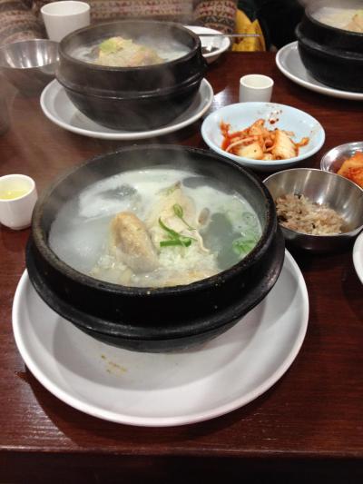 お客さんは地元の人というよりも各種外国人が多い感じがしました。日本人には相変わらず高級参鶏湯を進めてきますが、薬臭いの嫌いなので、とノーマルので。ここの大根キムチ、すっごくおいしかった。3回ぐらいお代わりしちゃいました。スープもあっさり目で美味しかった。