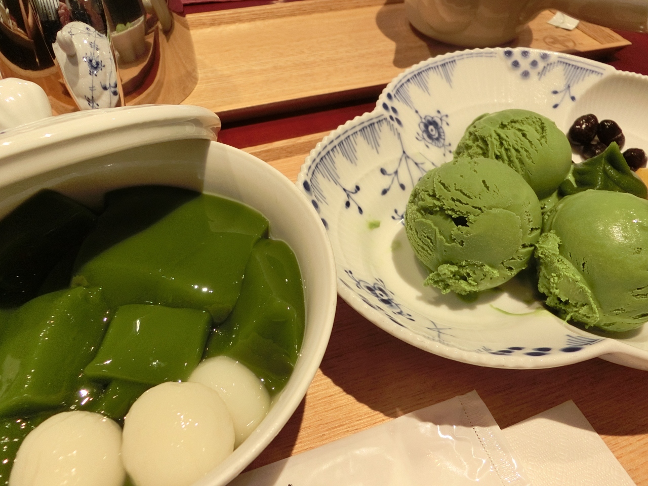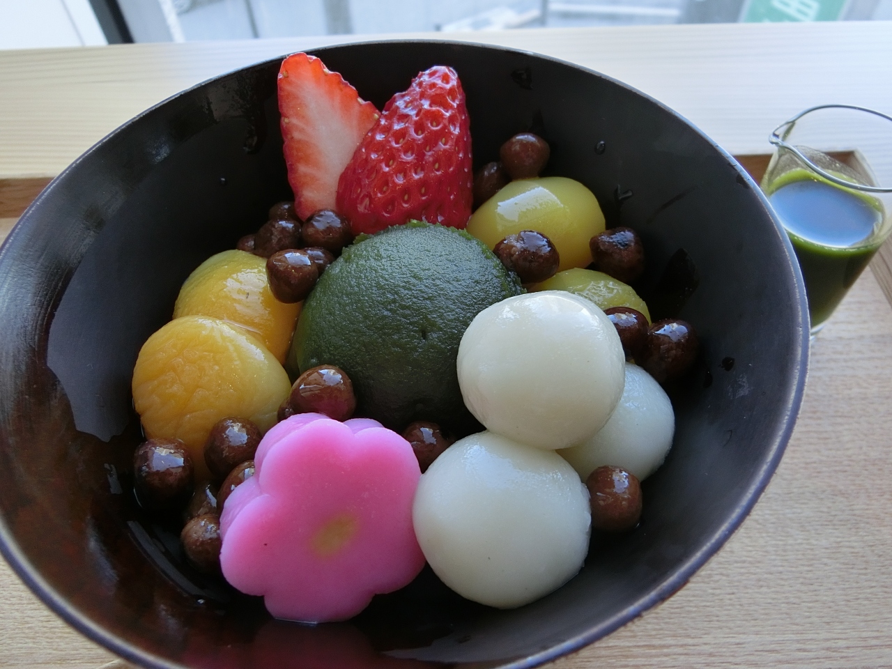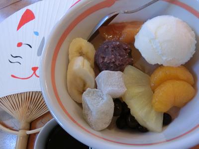 ソフトクリーム、こしあん、寒天、求肥、お豆さん、黒蜜、ひとつひとつ全て美味しくて大好きです。- 旅行時期