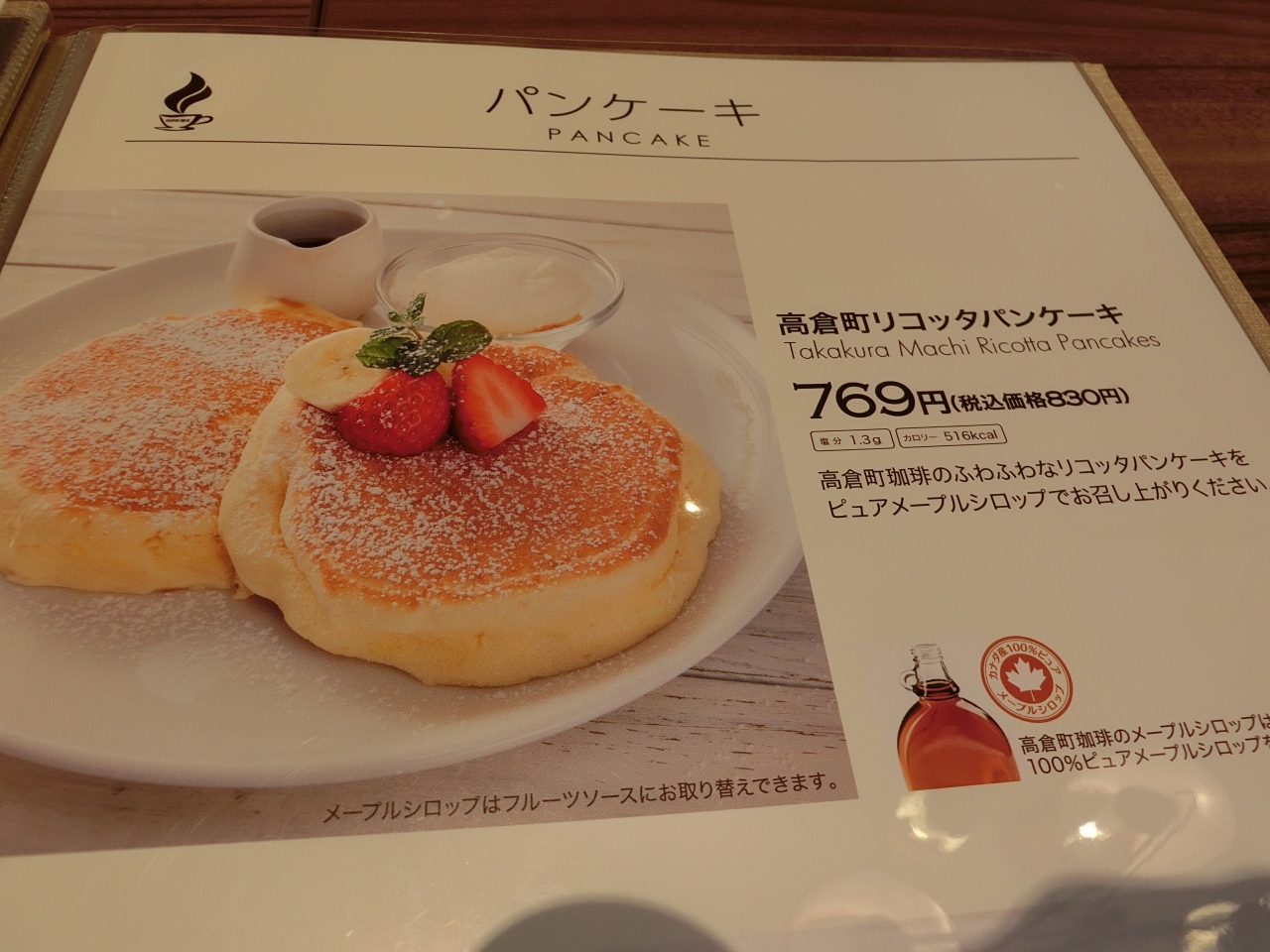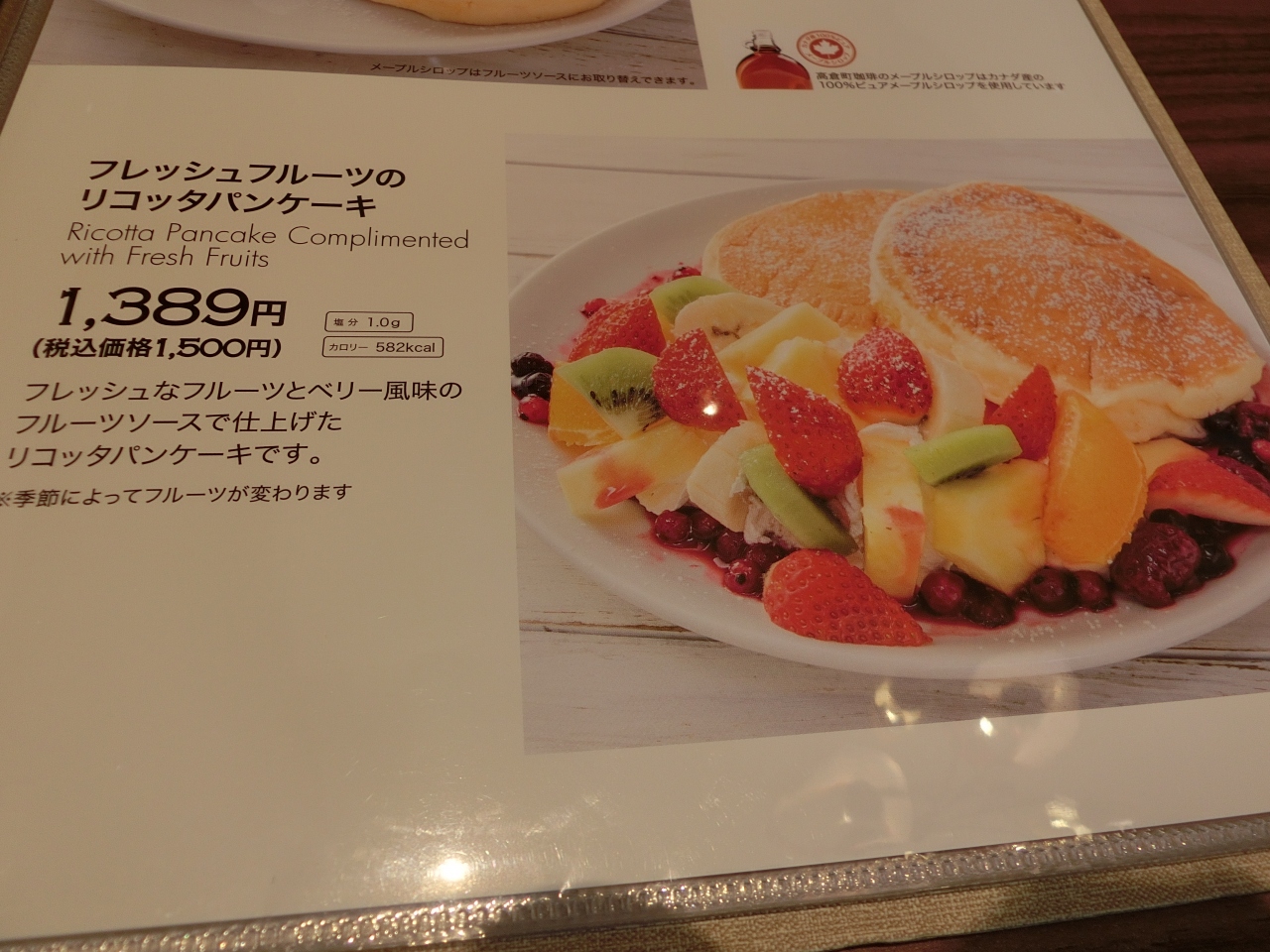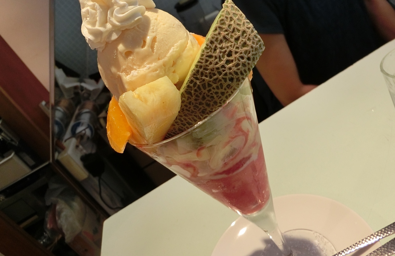 パフェを食べようと決めていたのですが、メニュー表以外にもメニューがあることを知っていたので、聞いてみると、早口過ぎて聞き取れなかったので、メニュー表にあった《フルーツパフェ》にしました。