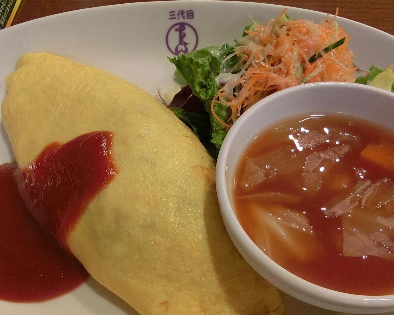 オムライスはシンプルなケチャップライスにフワットロの玉子で包まれていて、好きな味でした。