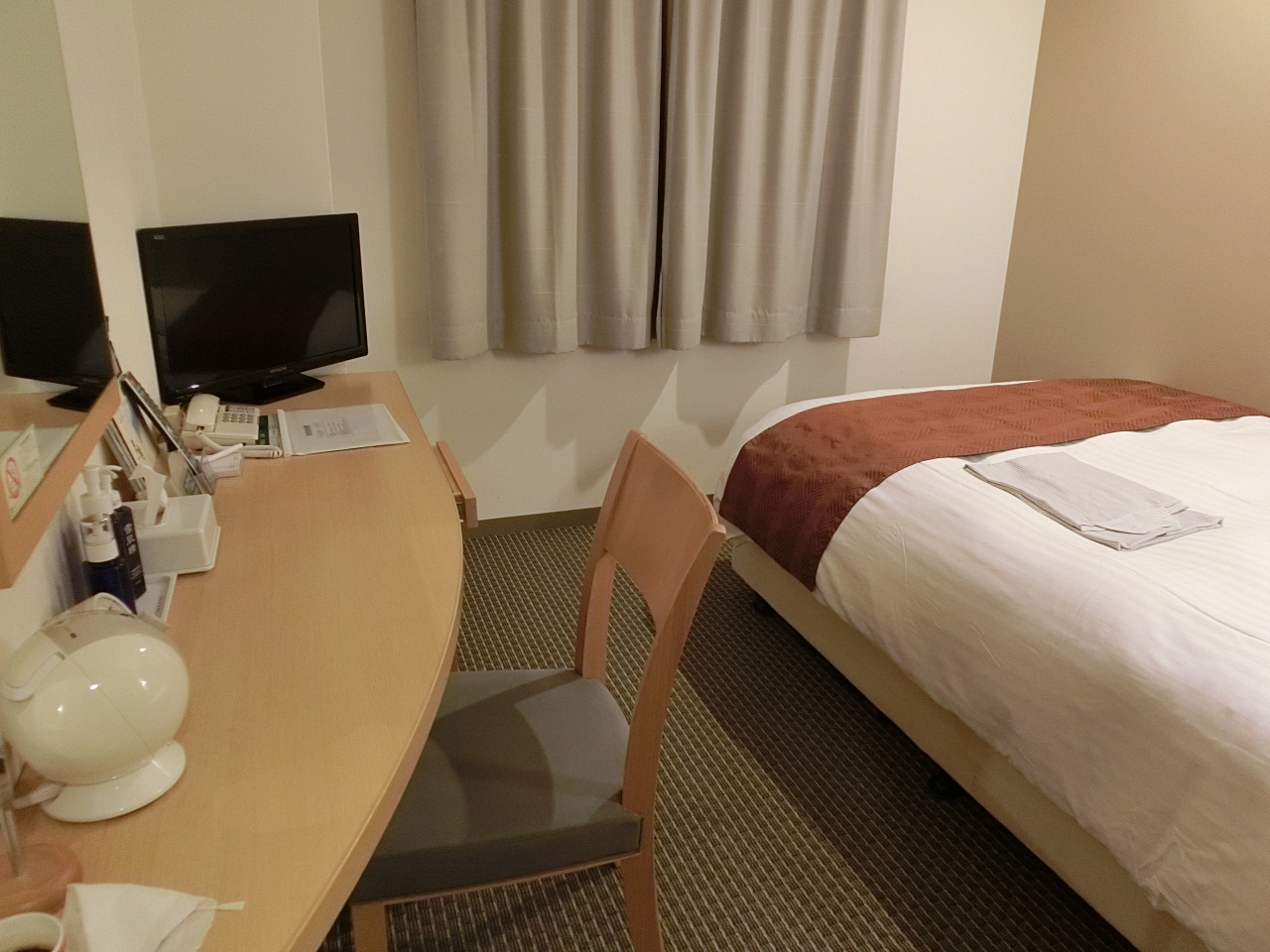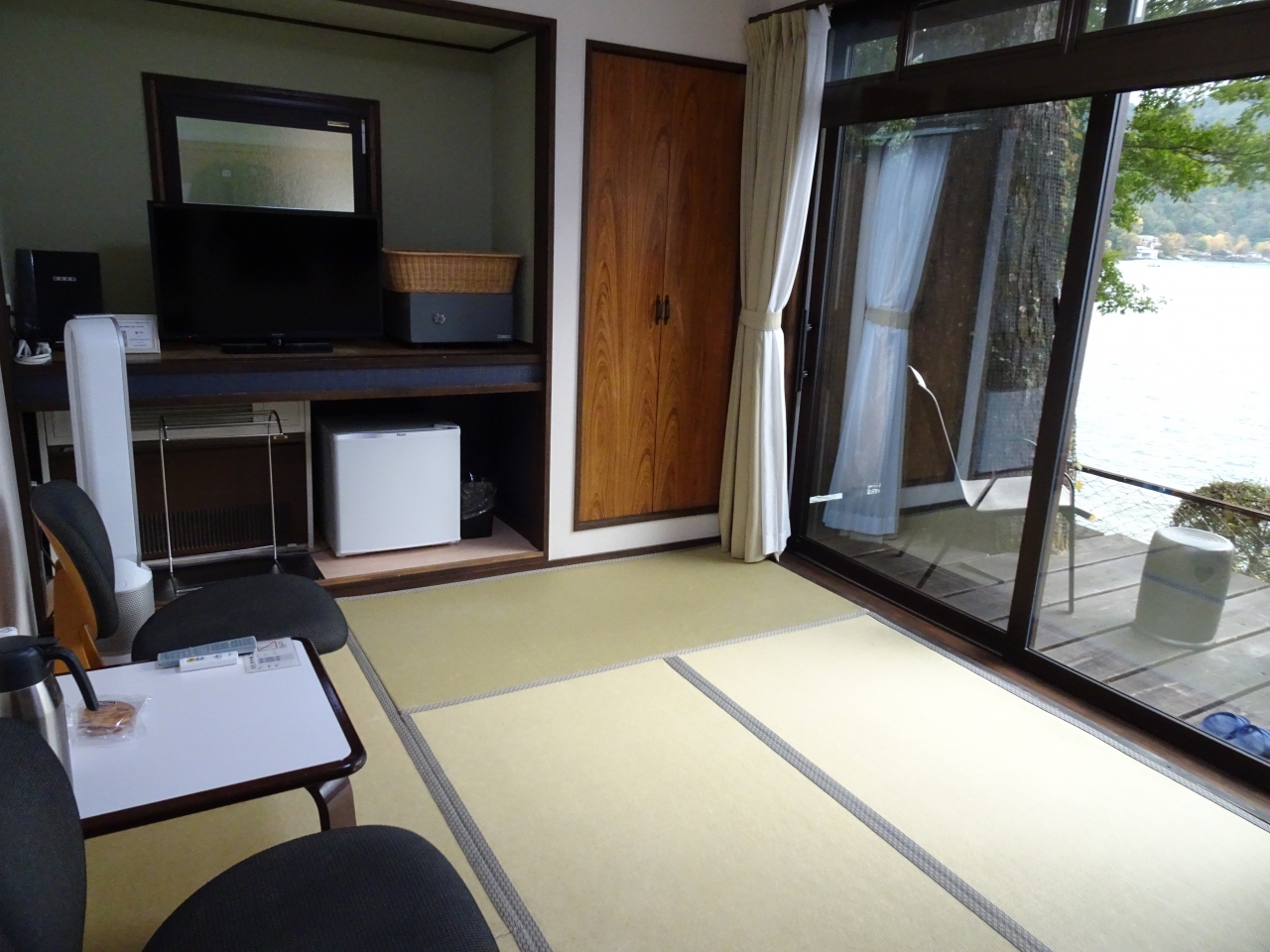 お部屋は6畳一間と狭いですが、それも問題にならないくらい部屋から見える中禅寺湖の景色はサイコーでした。