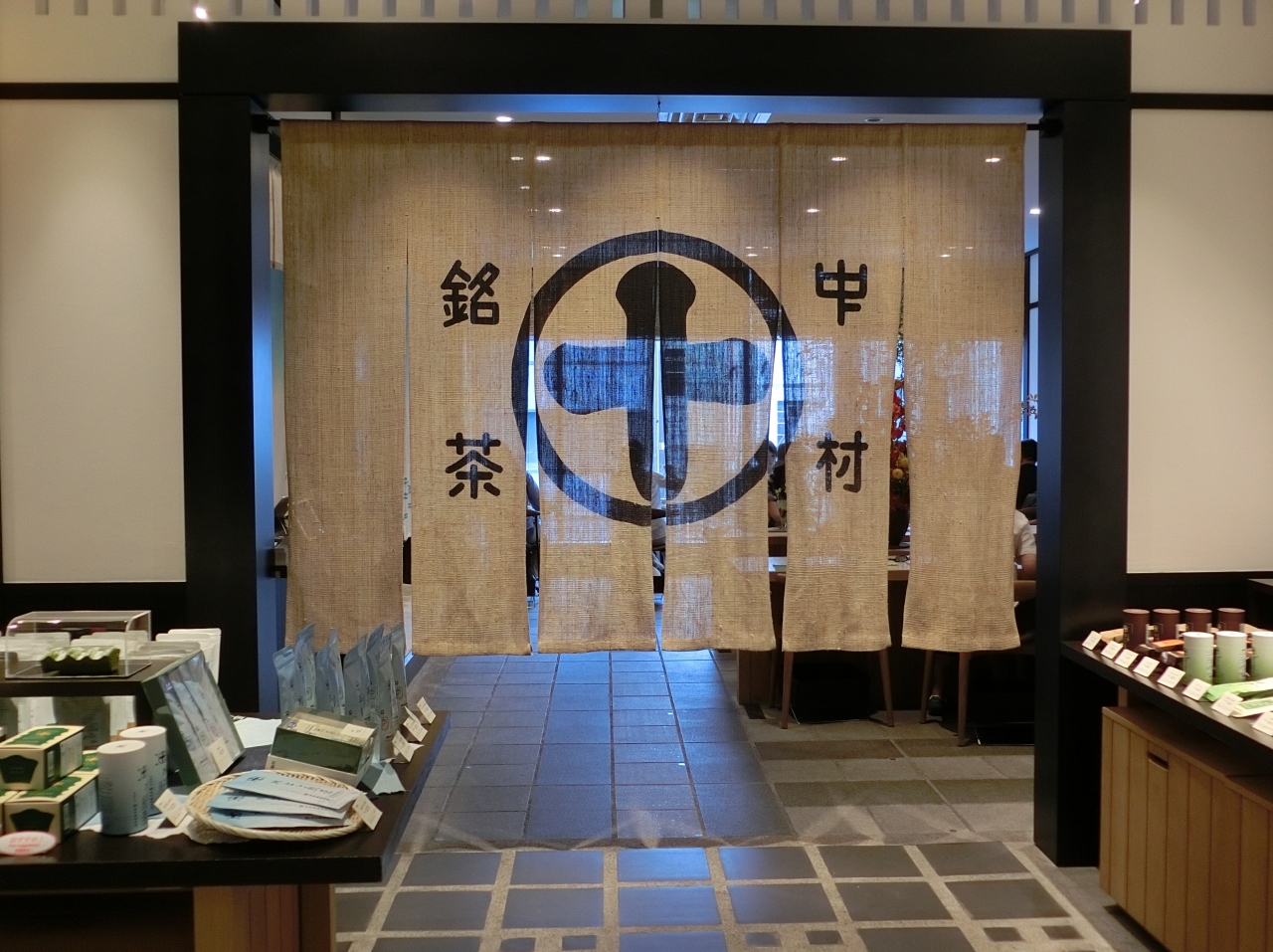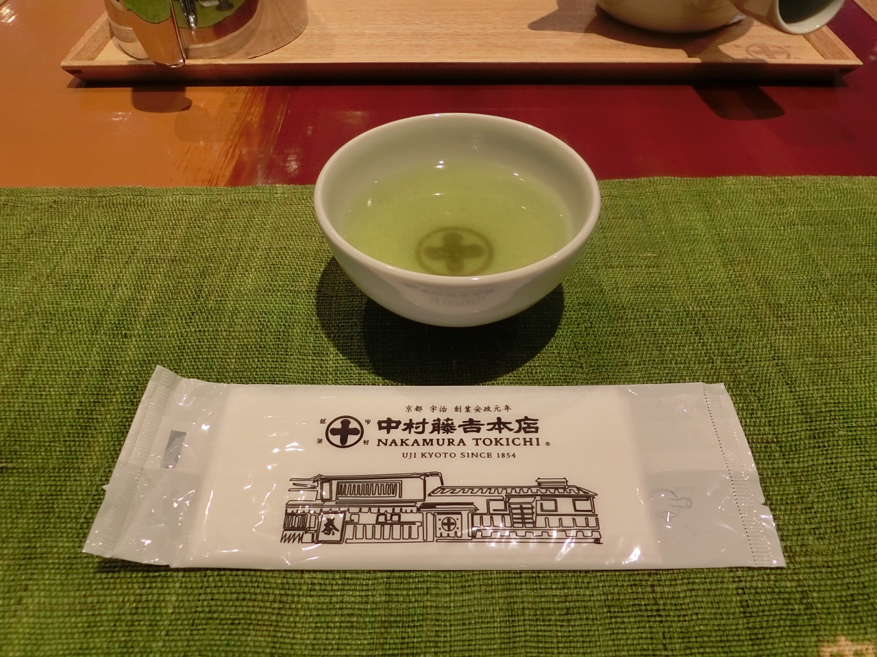 店内には、テーブル、いす、お茶が用意されていました。