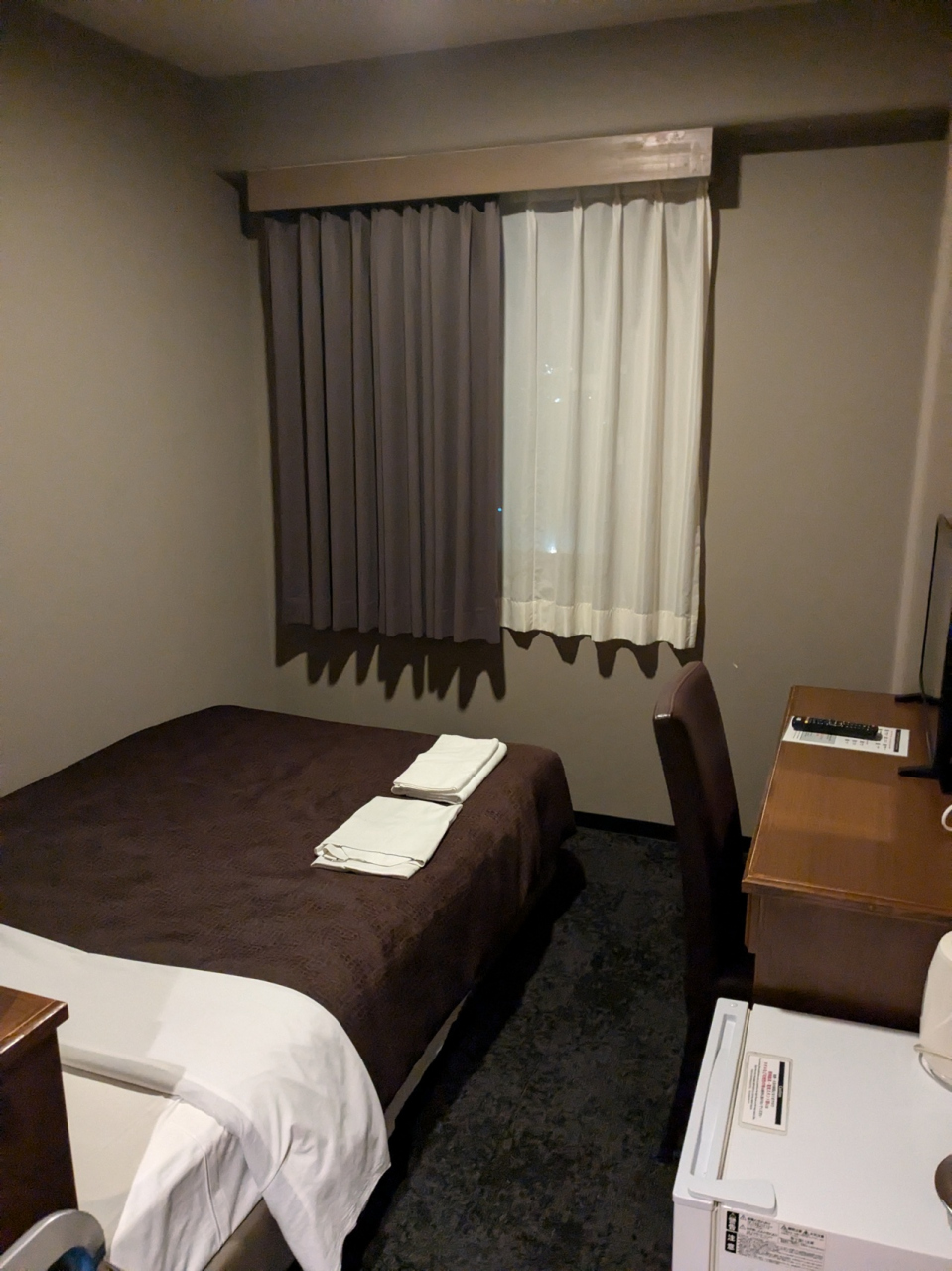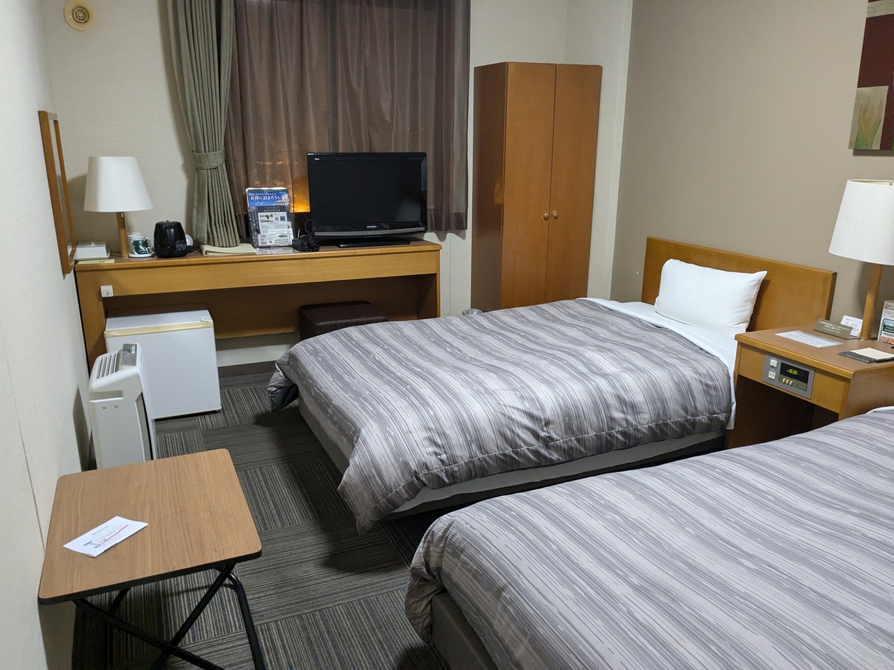 ビジネスで利用。安定のルートイン。周りにコンビニがないので、なにか買い出しに行くにはタクシーが必要。大浴場はせまいが、キレイだし、満足。朝ご飯も安定していて美味しい。部屋も都市部のビジネスホテルよりは広い。