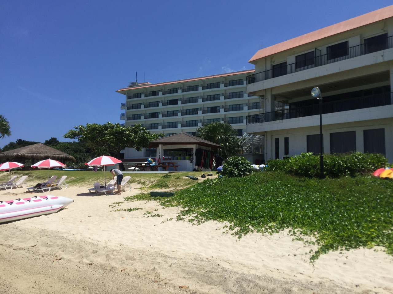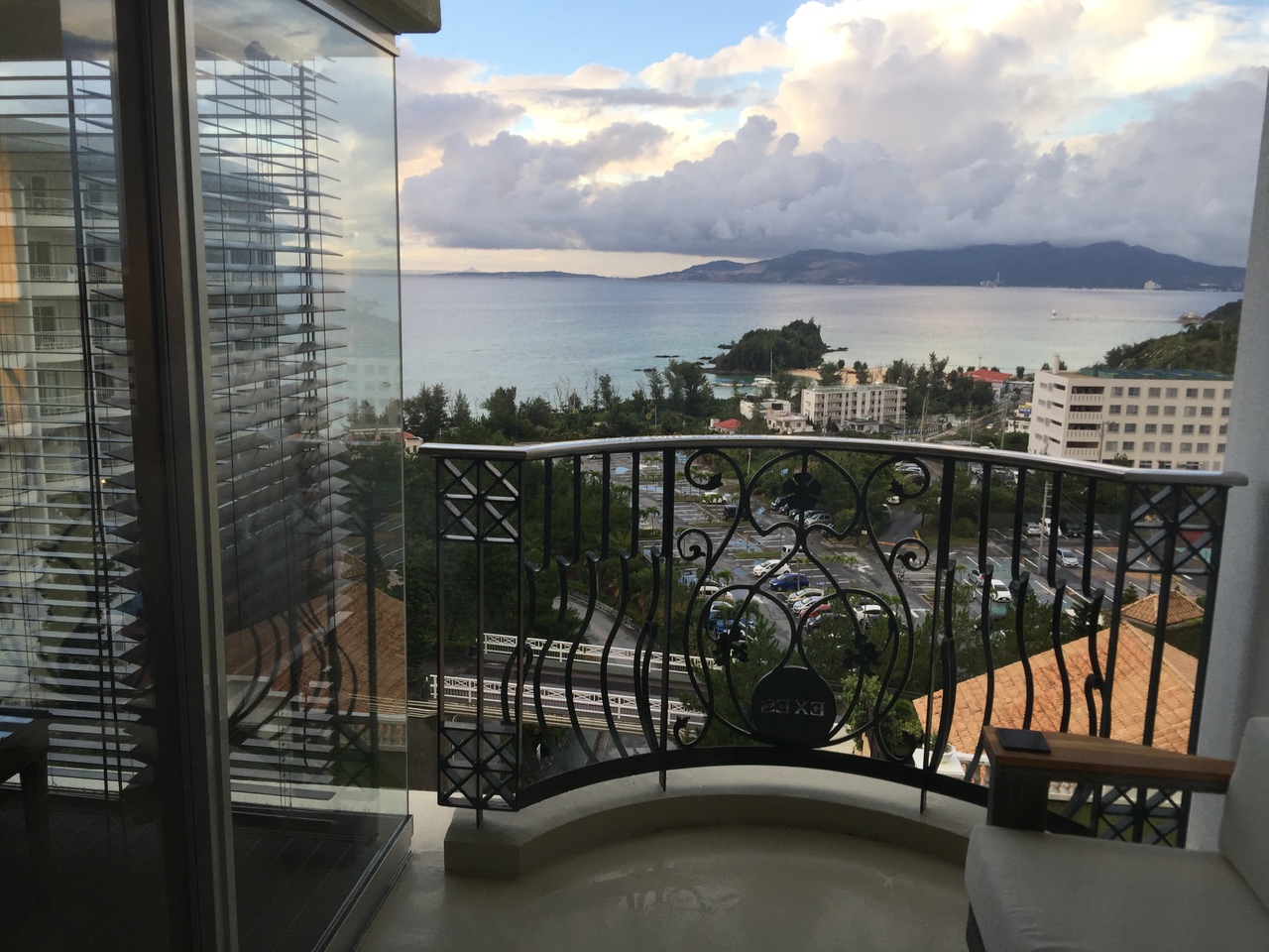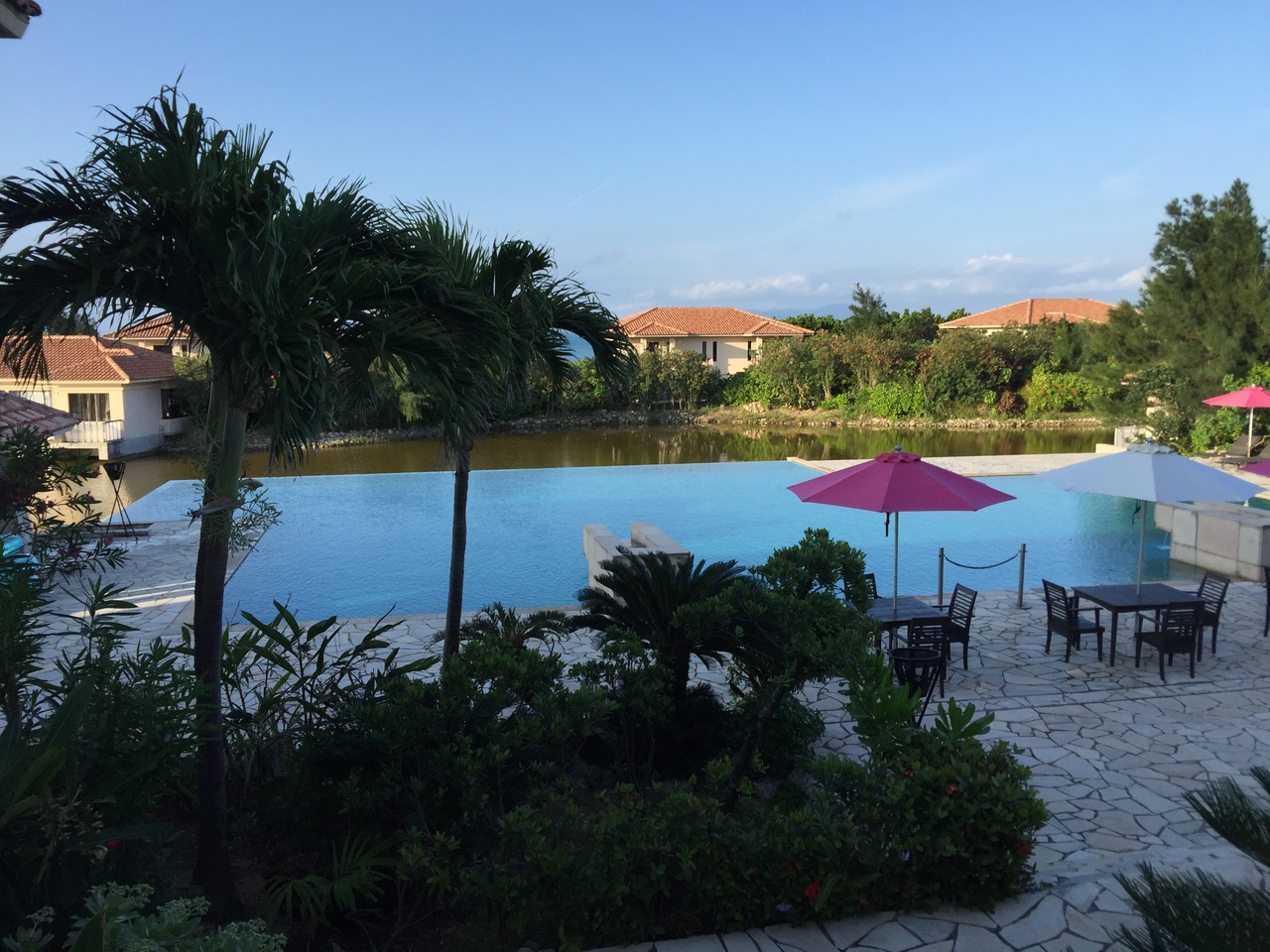 コーナールームでお隣のかりゆしビーチホテルを横目に見ながら、目の前に広がる景色にまた感動。下にはホテルのプールが見えます。