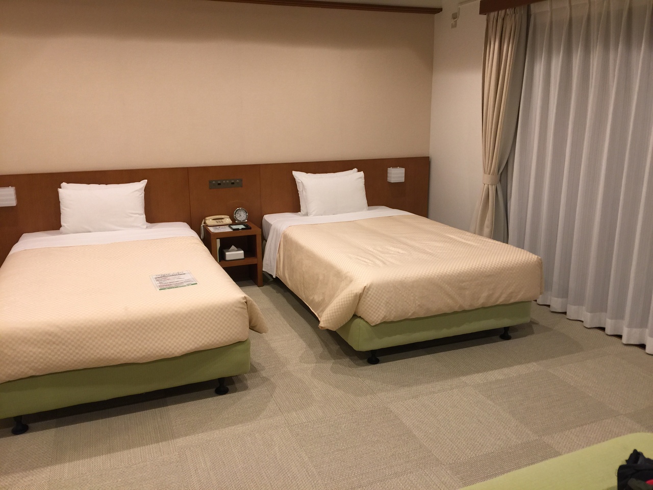 露天風呂と客室からは道路が見えるので、景色が良いとは言えません。特に最上階でなくてもよかったのかも。お部屋は12畳。4人でちょうどよい広さでした。