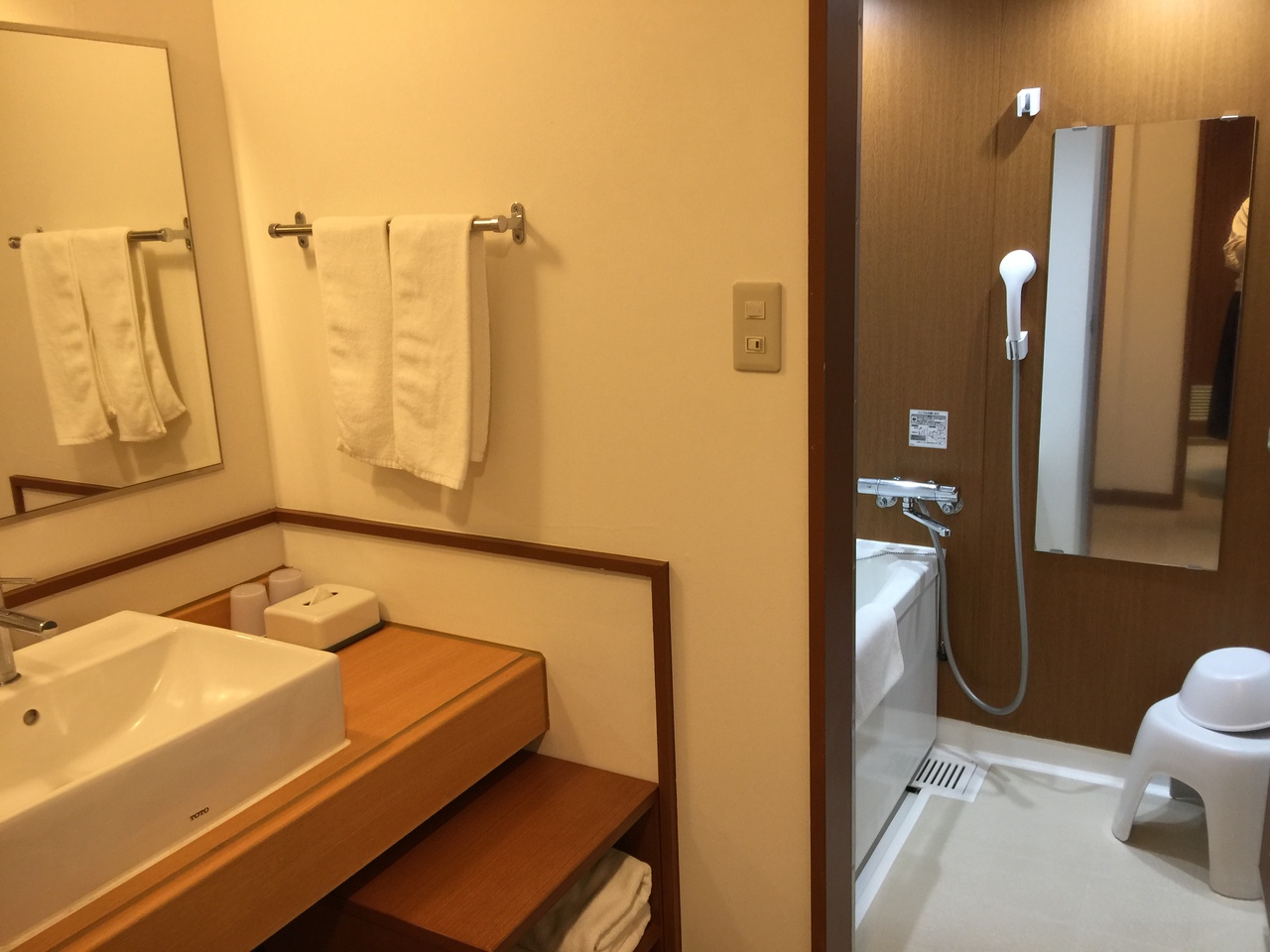 お風呂もユニットバスではなく、広い洗い場あり。お部屋以外にも展望浴場あり。